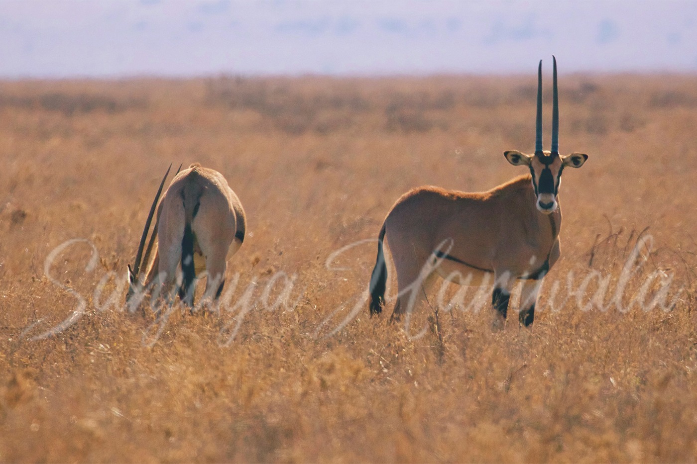 Some couples split chores — in the world of Oryx, one stands guard while the other enjoys nature’s buffet. These majestic antelopes embody strength, symmetry, and grace. With their long, vertical horns and poised stance, they’re among the most photogenic creatures in the wild. If you’re looking to add a striking wildlife print to your home or office, this image brings sophistication and a touch of the wild to any nature-inspired space.